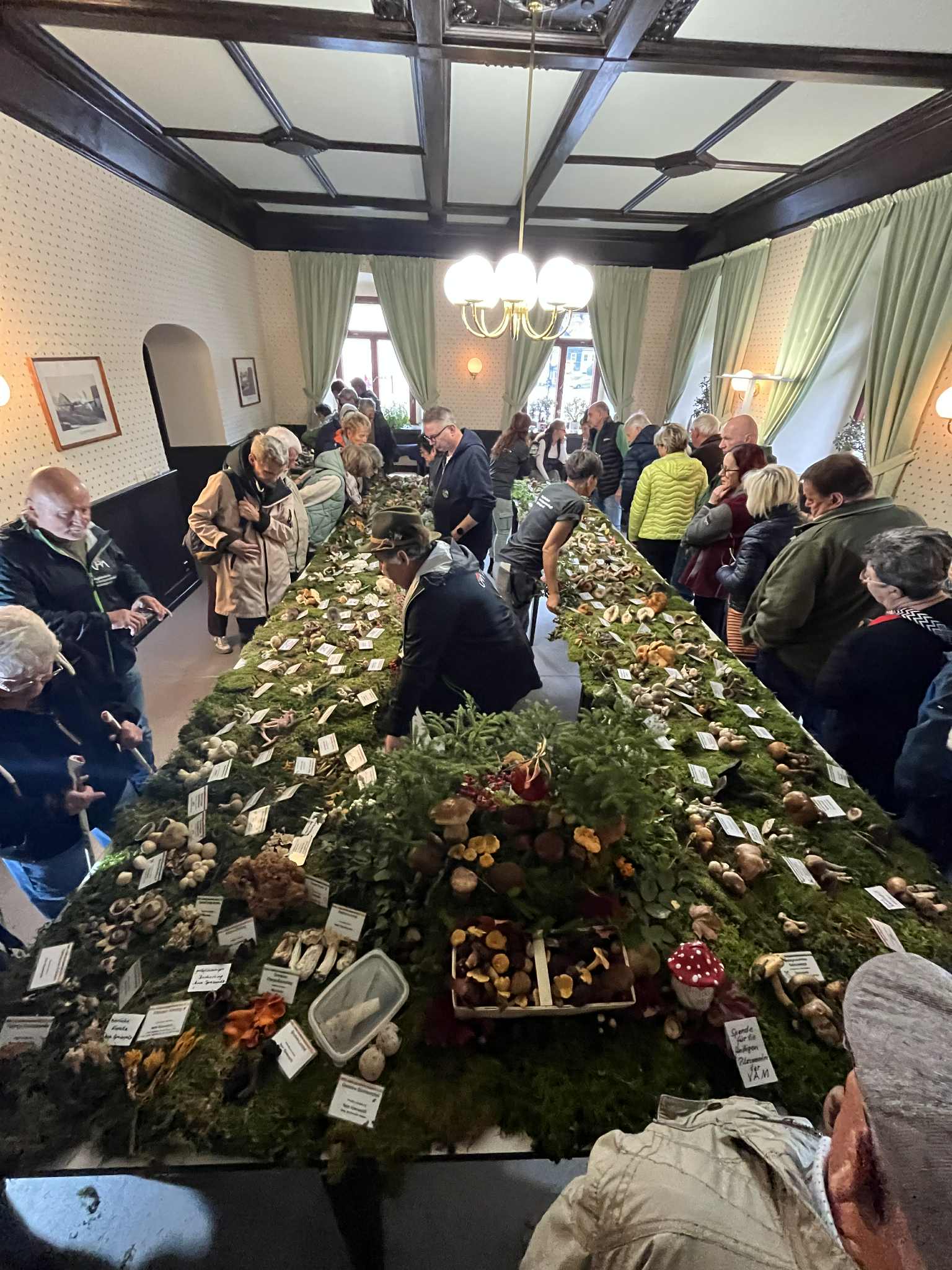 Ein großer Erfolg war unsere diesjährige Pilzausstellung zum Herbstmarkt in Tannenbergsthal! Hunderte Besucher belagerten die Tische mit den 200 Arten und waren überaus interessiert. Es konnten sogar die tödlich giftigen Arten, wie der Grüne Knollenblätterpilz und der Spitzgebuckelte Raukopf gezeigt werden. Auch ein Satansröhrling wurde begeistert bestaunt. Vielen Dank an die fleißigen Sammler, Aufbauer und Berater - am Ende hatten sich wirklich alle den Mund fusselig geredet ;) Sogar internationaler Besuch hat einen Abstecher zur Ausstellung gemacht und war ebenso begeistert von der Vielfalt und der ansprechenden Gestaltung der Ausstellung.
