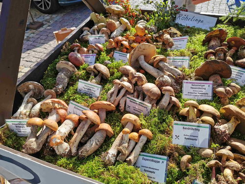 Die Beschaffung der Pilze gestaltete sich dieses Jahr aufgrund der anhaltenden Trockenheit schwierig. Einige Exemplare konnten aus einer Pilzausstellung vom Vortag übernommen werden. Zusätzlich brachte unser Vereinsmitglied Thomas zahlreiche Funde aus seiner Heimatregion - der Oberpfalz - nach Oelsnitz mit. Insgesamt konnten dadurch rund 130 Arten gezeigt werden.