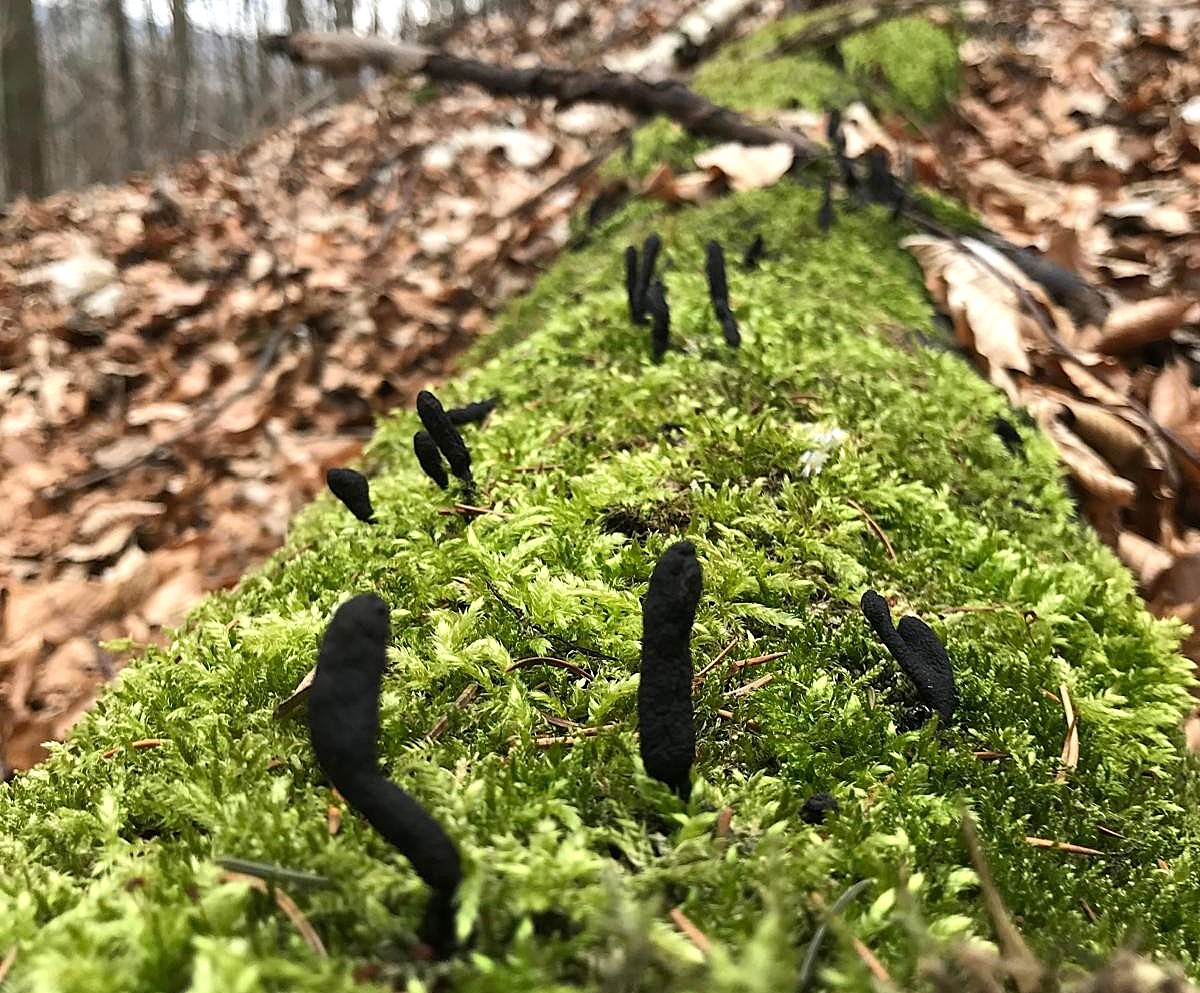 Auch Schlauchpilze wie die Langstielige Ahorn-Holzkeule beteiligen sich am Abbau: