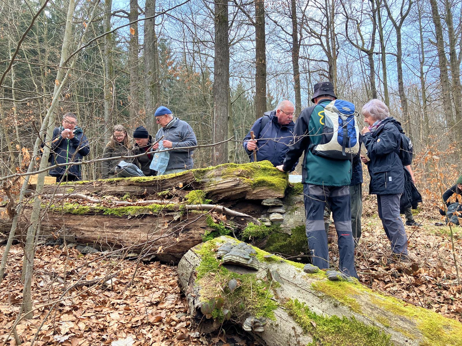 In dem von Rot-Buchen dominierten Wald bleibt Totholz liegen und beweist dadurch, wie viele Lebewesen am Zersetzungs-Prozess beteiligt sind. Vorrangig sind das viele verschiedene Pilze, die in der Lage sind, Lignin und Zellulose als Vorverdauer aufzuspalten, indem ihr Myzel in das tote Holz eindringt: