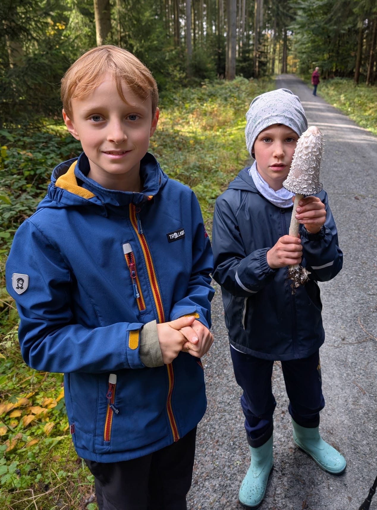 Bei der anschließenden Exkursion suchten die Kinder mit großer Begeisterung und guten Augen nach Pilzen.