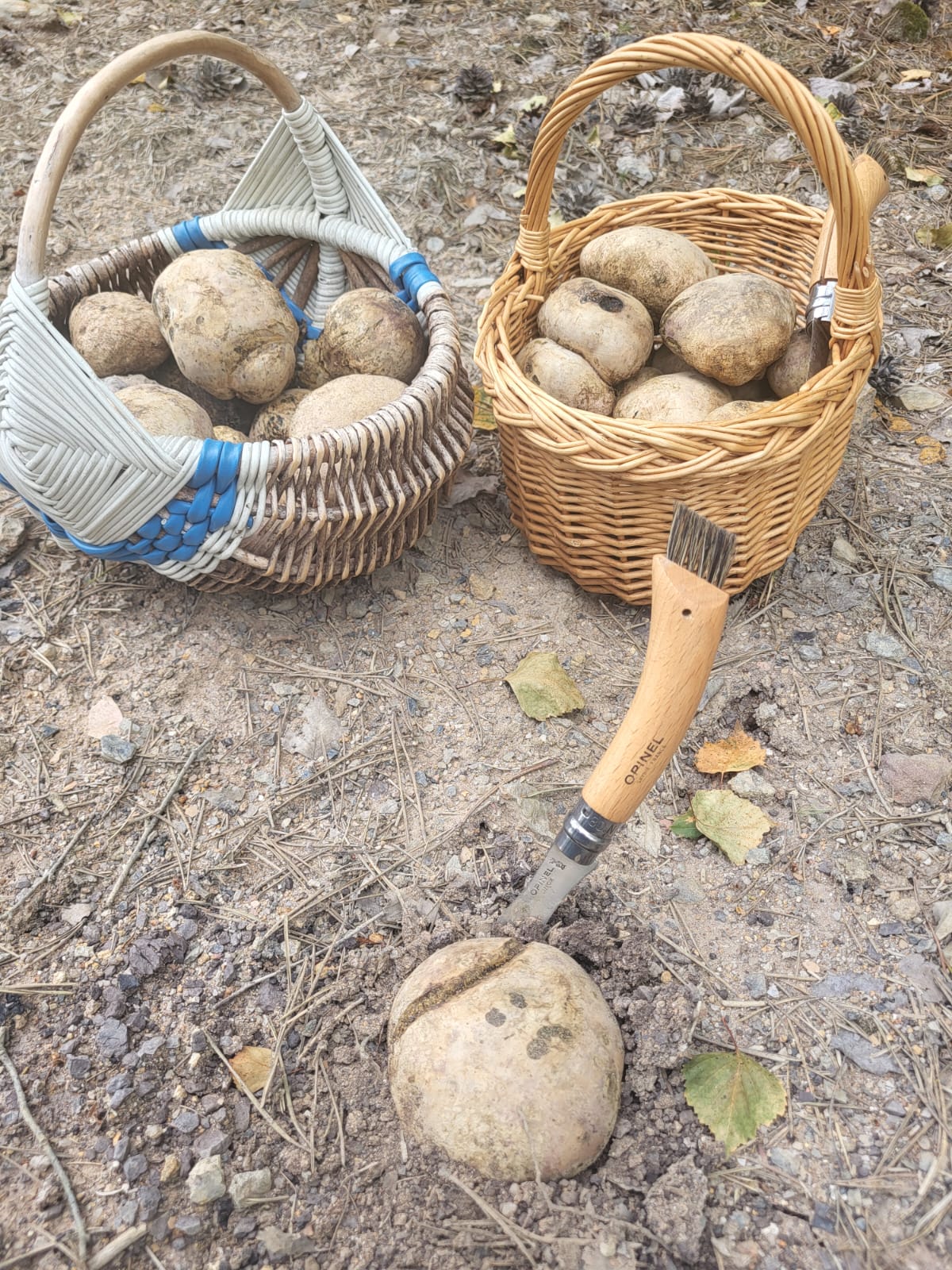 Böhmische Trüffel und Fränkische Schiefertrüffel, so hat sie der Volksmund vor langer Zeit getauft. Der pilzkundliche deutsche Name lautet Gemeiner Erbsenstreuling (Pisolithus arhizus). Genau genommen ist er weder Trüffel noch Streuling, sondern ist mit dem Steinpilz verwandt. Der Erbsenstreuling zählt zu den Röhrenpilzen (Boletales). Man findet ihn von Frühsommer bis Herbst; auf sterilen Sandböden, an Waldrändern und auf Abraumhalten des Kohlebergbaus. Die Fruchtkörper sind häufig an vegetationsarmen oder nahezu vegetationsfreien Flächen anzutreffen.